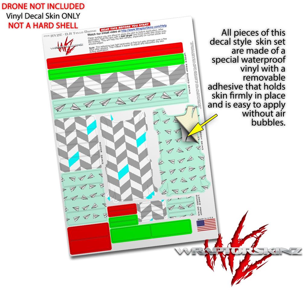 WraptorSkinz® skin wraps are printed using superb photo quality designs and vibrant colors printed with special fade resistant inks that last even in direct sun for years. WraptorSkinz are a composite of two layers of commercial grade materials. The bottom layer is a soft, flexible vinyl with a special removable adhesive that is easily positioned, applied without air bubbles. Next we print the bottom layer with UV protected, fade resistant inks that deliver superb photo quality designs in vibrant colors. Finally we bond a professional grade laminate over the entire skin adding a glossy protective finish. This product is not affiliated with or endorsed by the Ryze or DJI brand.