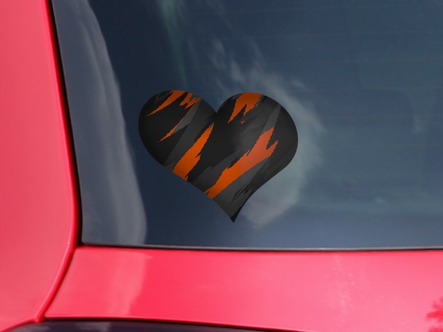 Jagged Camo Burnt Orange - I Heart Love Car Window Decal 6.5 x 5.5 inches