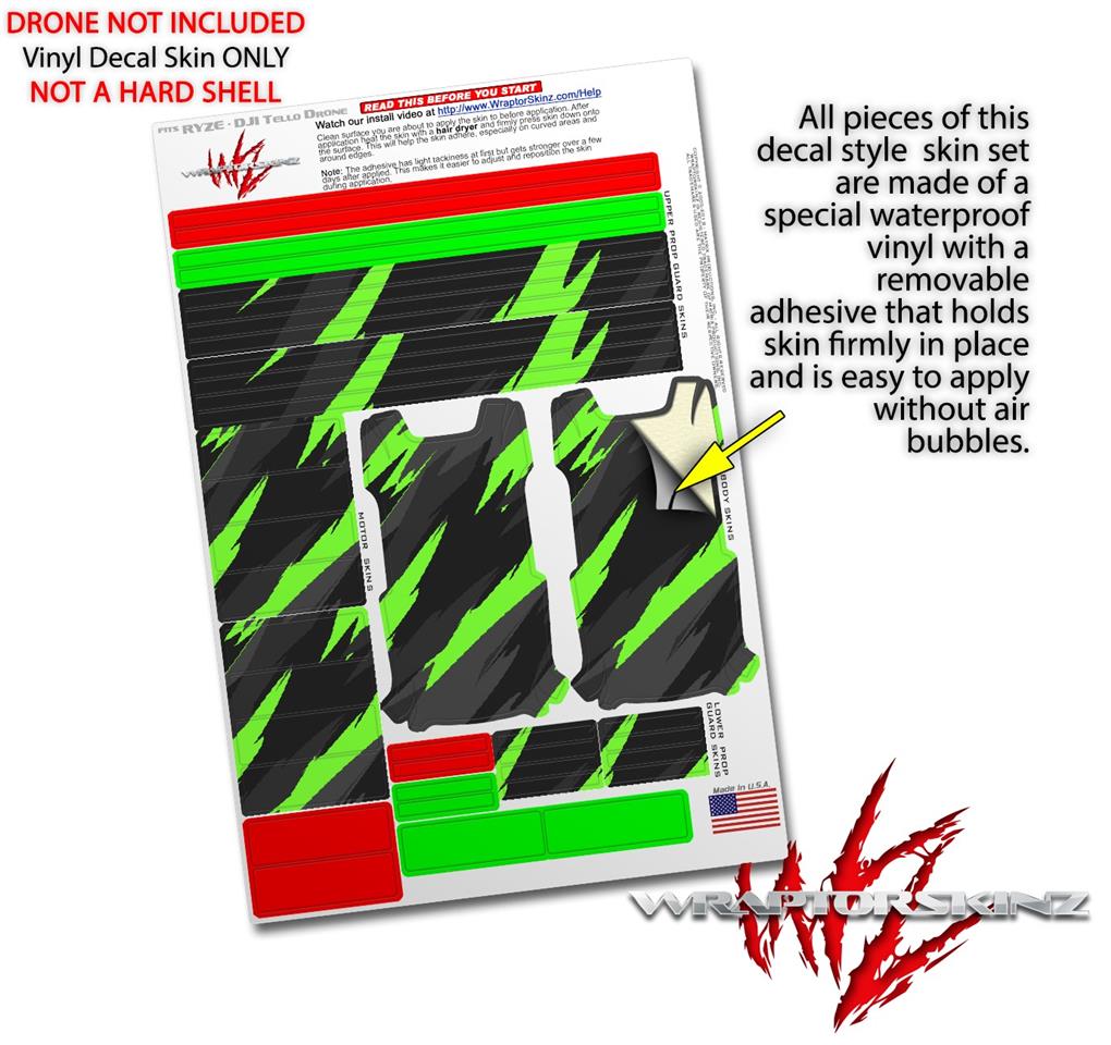 Skin Decal Wrap 2 Pack for DJI Ryze Tello Drone Jagged Camo Neon Green DRONE NOT INCLUDED