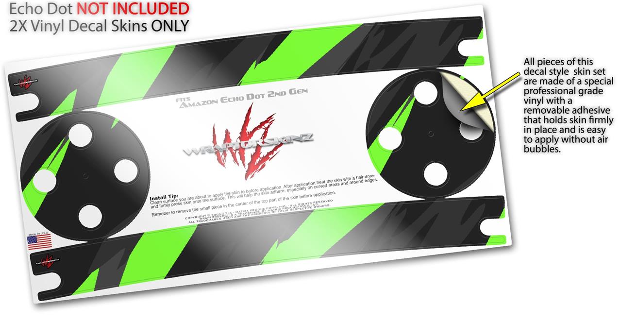 Skin Wrap Decal Set 2 Pack for Amazon Echo Dot 2 - Jagged Camo Neon Green (2nd Generation ONLY - Echo NOT INCLUDED)