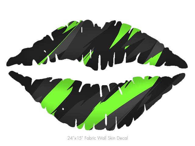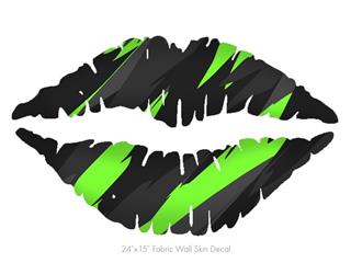 Jagged Camo Neon Green - Kissing Lips Fabric Wall Skin Decal measures 24x15 inches