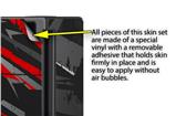 WraptorSkinz® skins are superb photo quality designs and vibrant colors printed with special Eco-Friendly, fade resistant inks. Our skins are self-adhering flexible vinyl skins that helps prevent scratches. Made of composite, multi-layered commercial grade materials. The bottom layer is made with a special removable adhesive that is easily positioned and applied without air bubbles. We print your design on the bottom layer then bond a professional grade laminate over the entire skin adding a glossy protective finish.