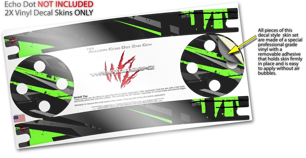 Skin Wrap Decal Set 2 Pack for Amazon Echo Dot 2 - Baja 0014 Neon Green (2nd Generation ONLY - Echo NOT INCLUDED)