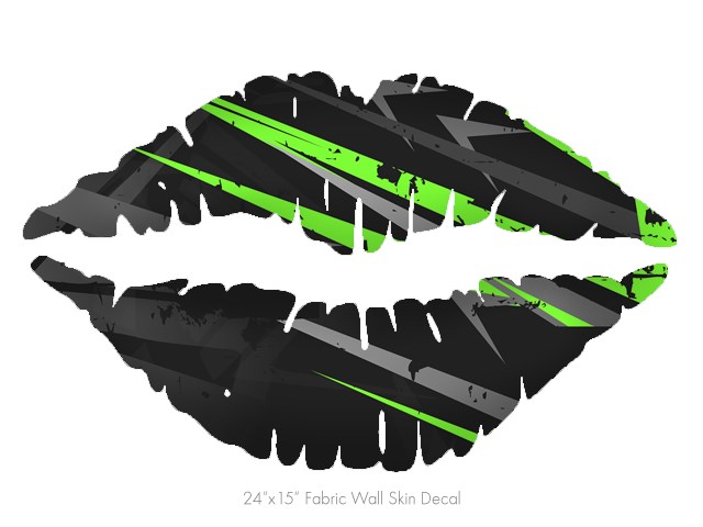 Baja 0014 Neon Green - Kissing Lips Fabric Wall Skin Decal measures 24x15 inches