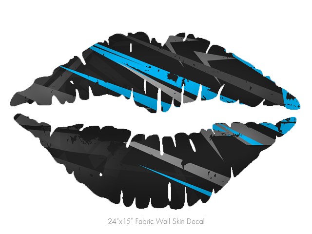 Baja 0014 Blue Medium - Kissing Lips Fabric Wall Skin Decal measures 24x15 inches