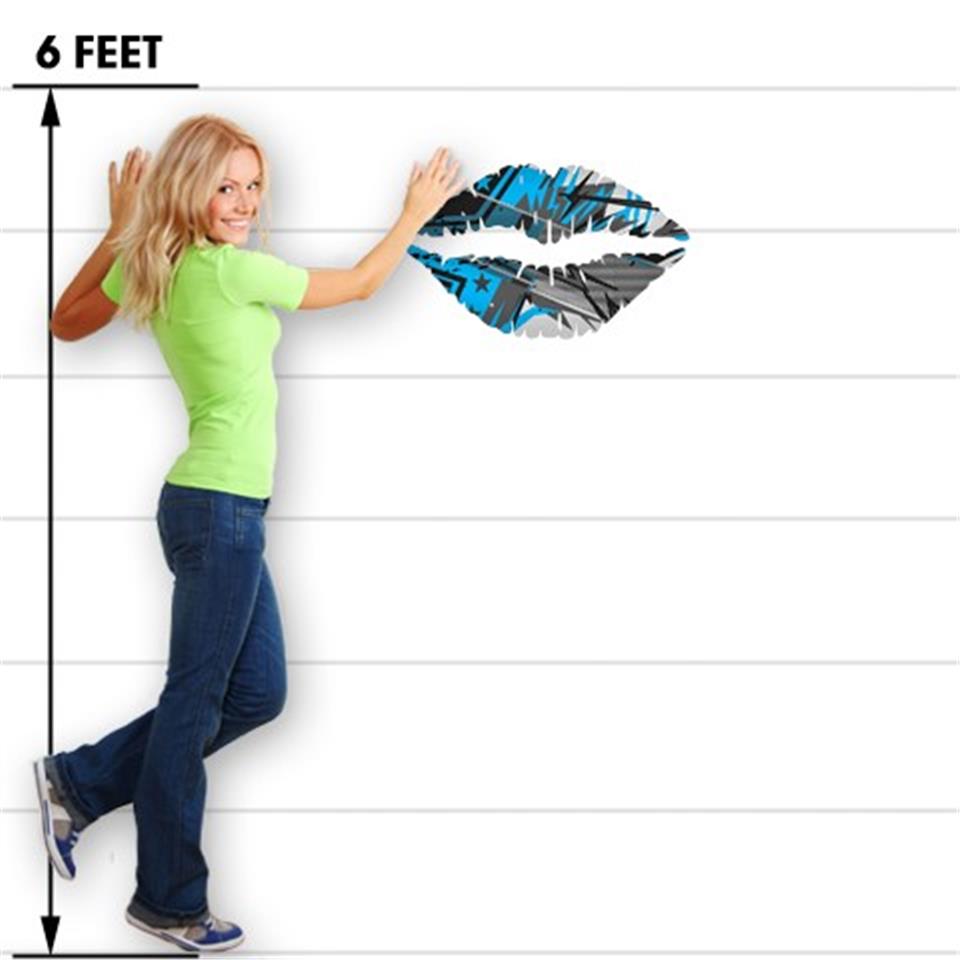 Baja 0032 Blue Medium - Kissing Lips Fabric Wall Skin Decal measures 24x15 inches