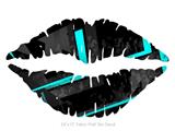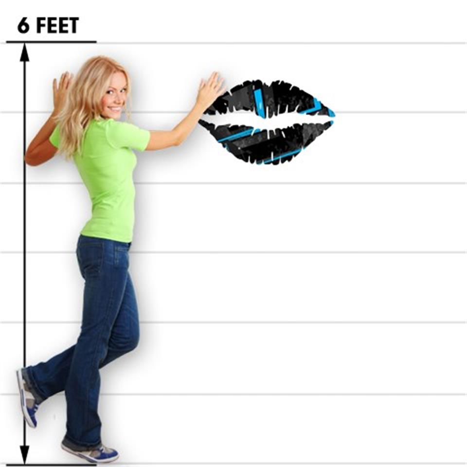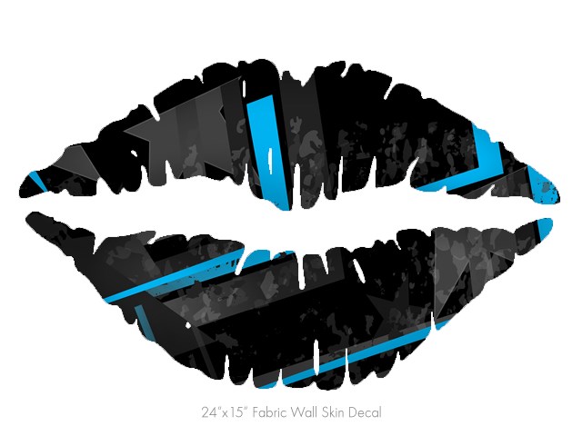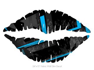 Baja 0004 Blue Medium - Kissing Lips Fabric Wall Skin Decal measures 24x15 inches