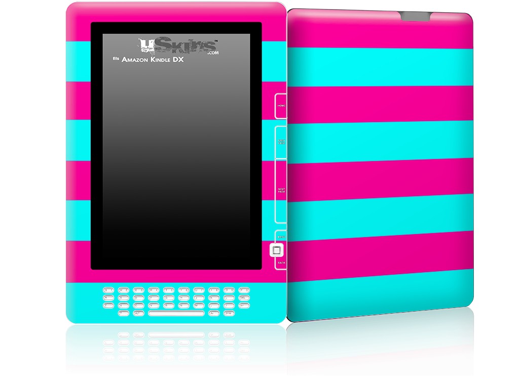 Psycho Stripes Neon Teal and Hot Pink - Decal Style Skin for Amazon Kindle DX