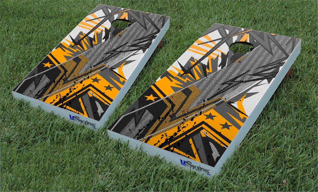 WraptorSkinz® corn hole wraps stick to Painted surfaces and even Raw Wood! Automotive vinyl does not cut it on bag toss game boards. We use professional grade, 7 year vinyl with specially formulated adhesive that can be applied directly to raw wood boards. Then we print with the UV protected inks for bright, vivid colors that resist sun fading.