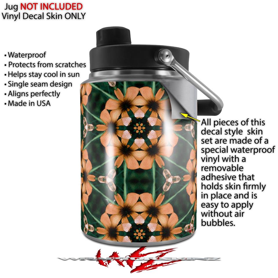 Skin Decal Wrap for Yeti Half Gallon Jug Floral Pattern Orange - JUG NOT INCLUDED by WraptorSkinz
