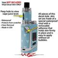 WraptorSkinz® skin wraps are printed using superb photo quality designs and vibrant colors printed with special fade resistant inks that last even in direct sun for years. WraptorSkinz are a composite of two layers of commercial grade materials. The bottom layer is a soft, flexible vinyl with a special removable adhesive that is easily positioned, applied without air bubbles. Next we print the bottom layer with UV protected, fade resistant inks that deliver superb photo quality designs in vibrant colors. Finally we bond a professional grade laminate over the entire skin adding a glossy protective finish. This product is not affiliated with or endorsed by the Smok brand.