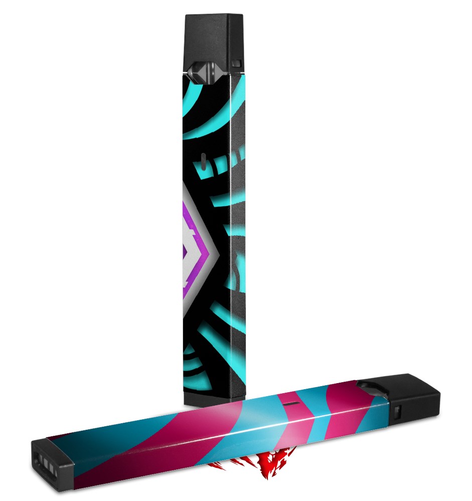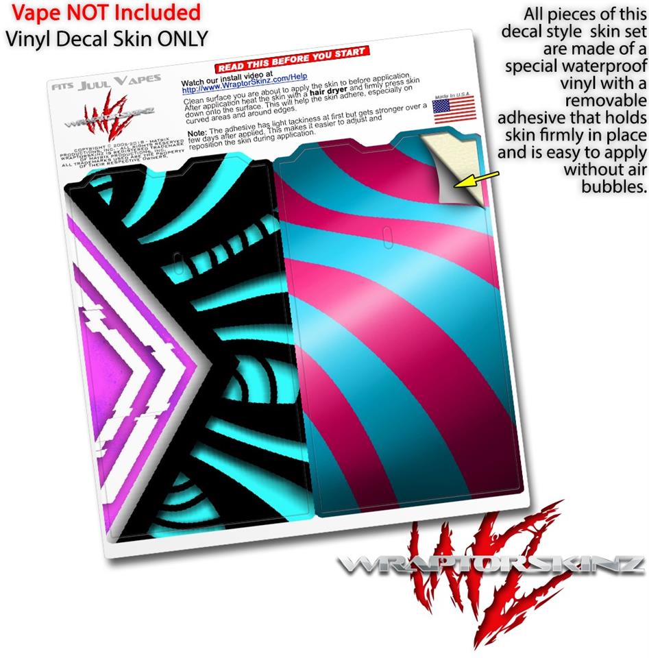 Skin Decal Wrap 2 Pack for Juul Vapes Black Waves Neon Teal Hot Pink JUUL NOT INCLUDED