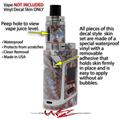 WraptorSkinz® skin wraps are printed using superb photo quality designs and vibrant colors printed with special fade resistant inks that last even in direct sun for years. WraptorSkinz are a composite of two layers of commercial grade materials. The bottom layer is a soft, flexible vinyl with a special removable adhesive that is easily positioned, applied without air bubbles. Next we print the bottom layer with UV protected, fade resistant inks that deliver superb photo quality designs in vibrant colors. Finally we bond a professional grade laminate over the entire skin adding a glossy protective finish. This product is not affiliated with or endorsed by the Smok brand.