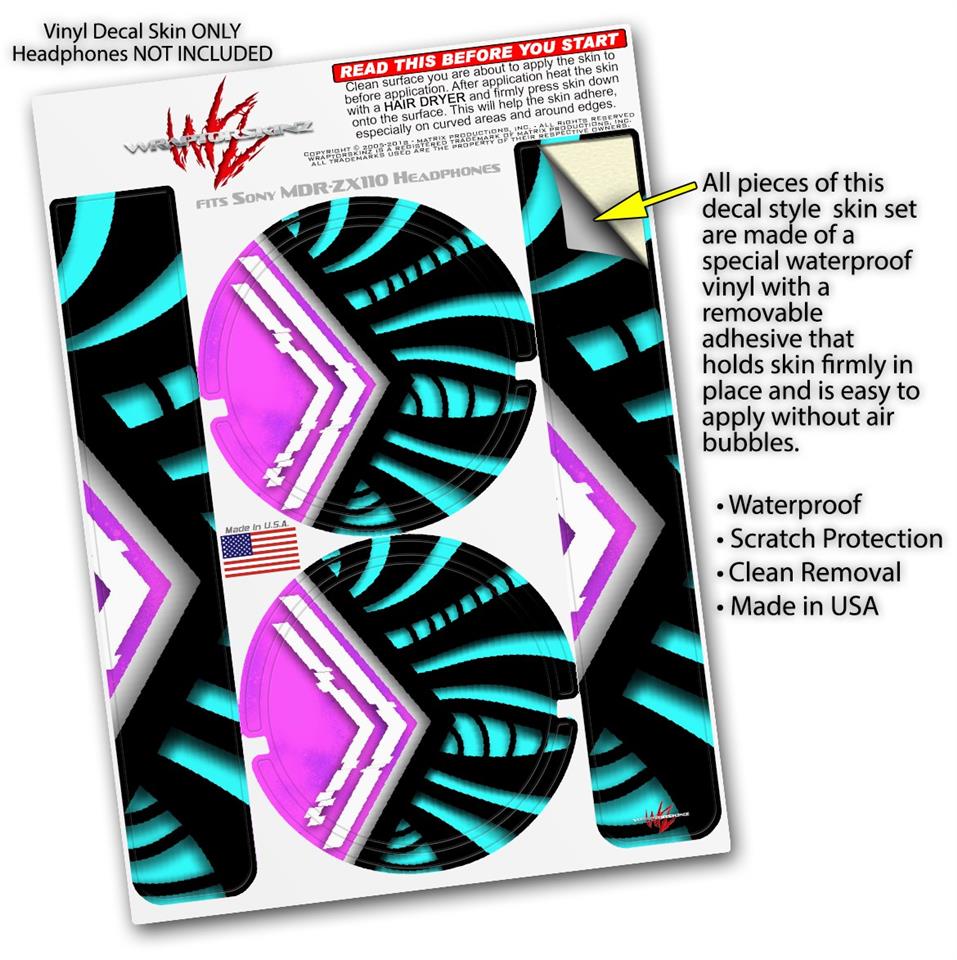 Decal style Skin Wrap for Sony MDR ZX110 Headphones Black Waves Neon Teal Hot Pink (HEADPHONES NOT INCLUDED)