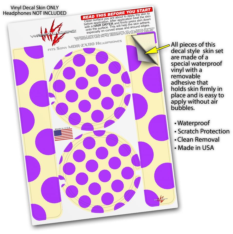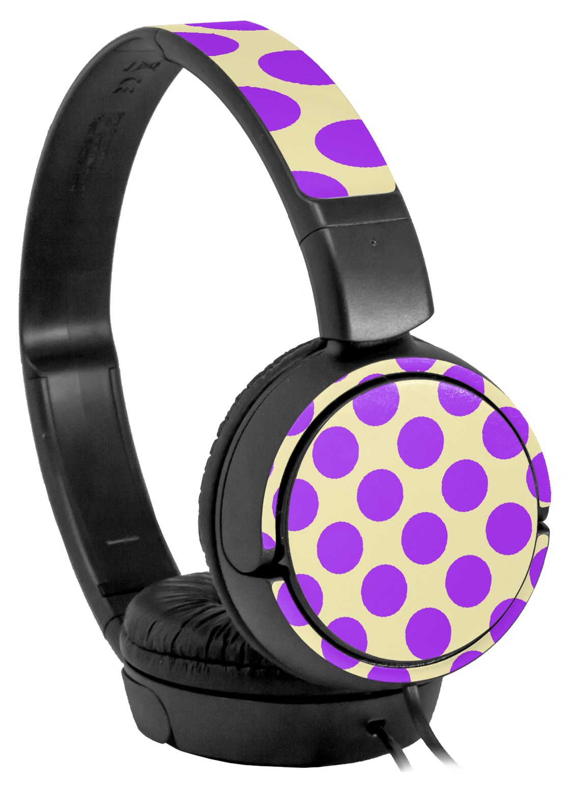 Decal style Skin Wrap for Sony MDR ZX110 Headphones Kearas Polka Dots Purple On Cream (HEADPHONES NOT INCLUDED)