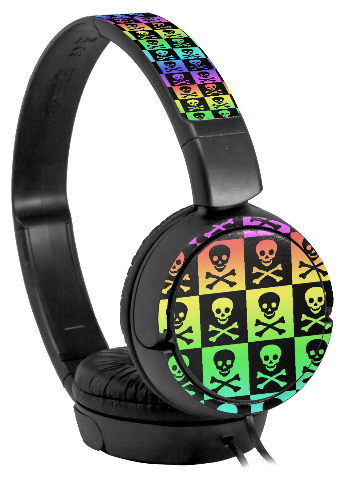 Decal style Skin Wrap for Sony MDR ZX110 Headphones Skull Checkers Rainbow (HEADPHONES NOT INCLUDED)