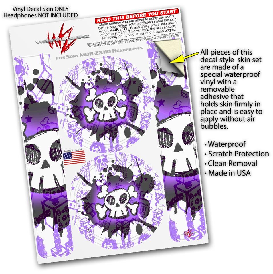 Decal style Skin Wrap for Sony MDR ZX110 Headphones Cartoon Skull Purple (HEADPHONES NOT INCLUDED)