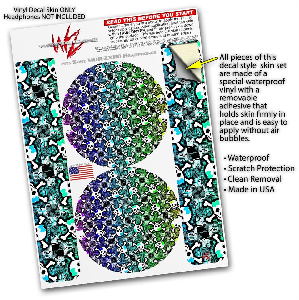 Decal style Skin Wrap for Sony MDR ZX110 Headphones Splatter Girly Skull Rainbow (HEADPHONES NOT INCLUDED)