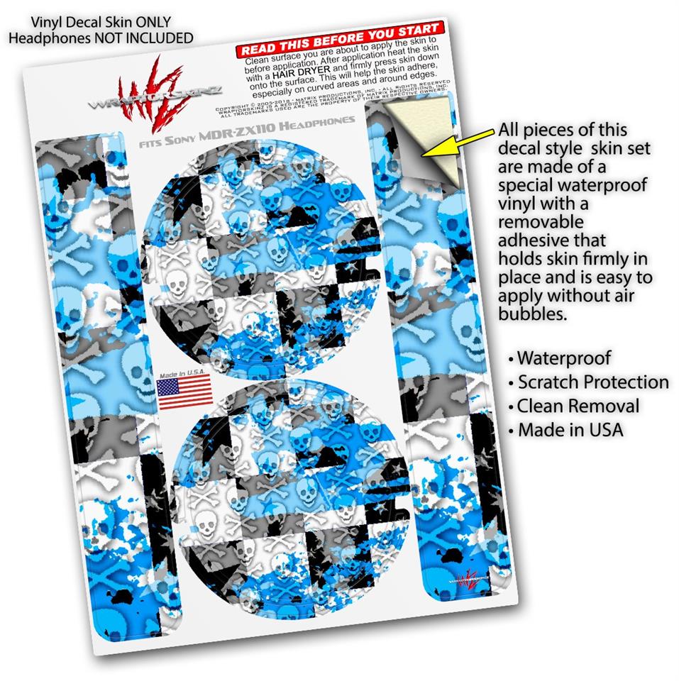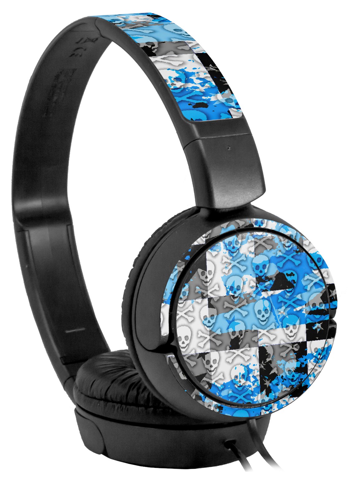 Decal style Skin Wrap for Sony MDR ZX110 Headphones Checker Skull Splatter Blue (HEADPHONES NOT INCLUDED)