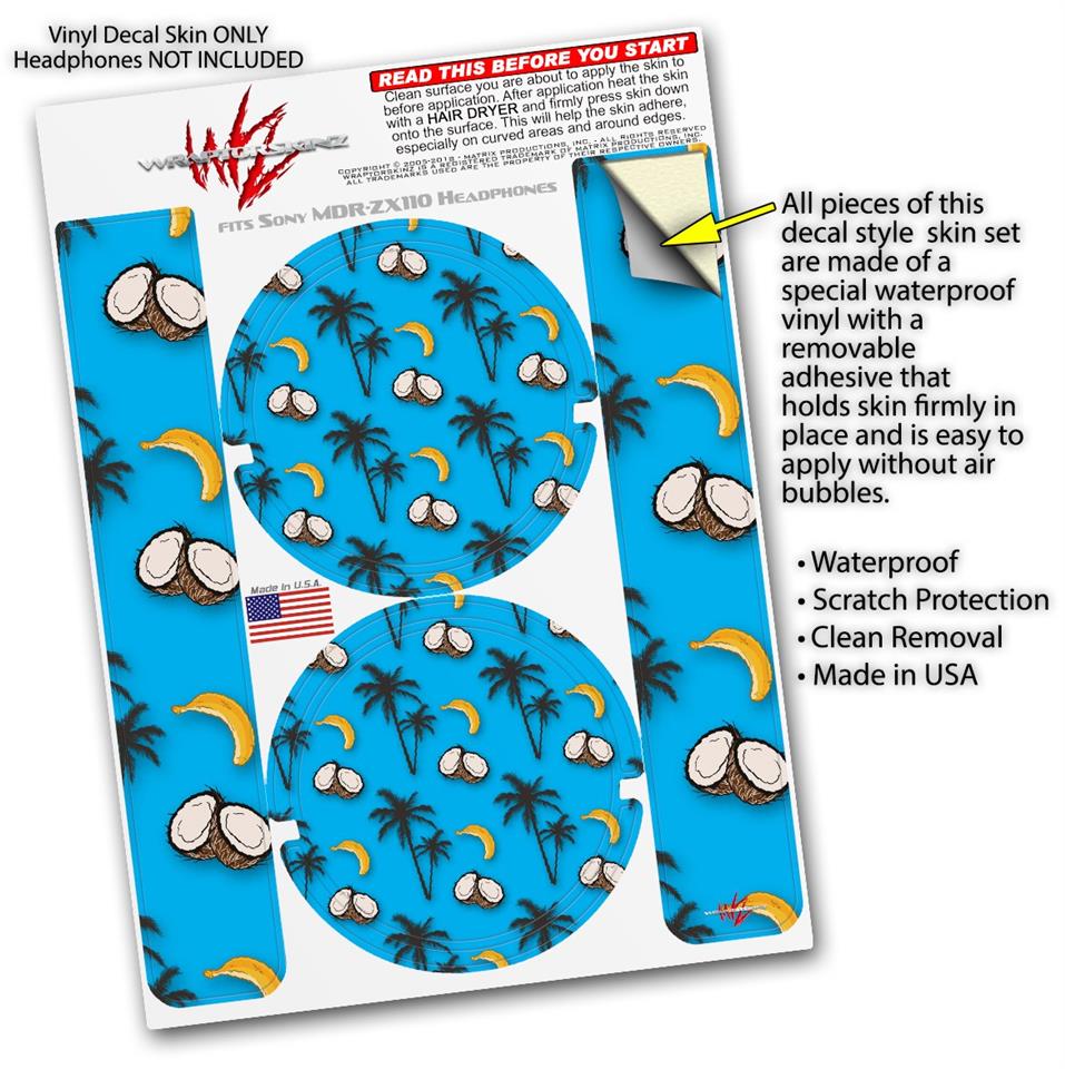 Decal style Skin Wrap for Sony MDR ZX110 Headphones Coconuts Palm Trees and Bananas Blue Medium (HEADPHONES NOT INCLUDED)