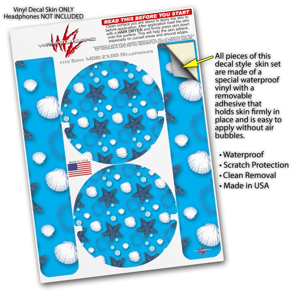 Decal style Skin Wrap for Sony MDR ZX110 Headphones Starfish and Sea Shells Blue Medium (HEADPHONES NOT INCLUDED)