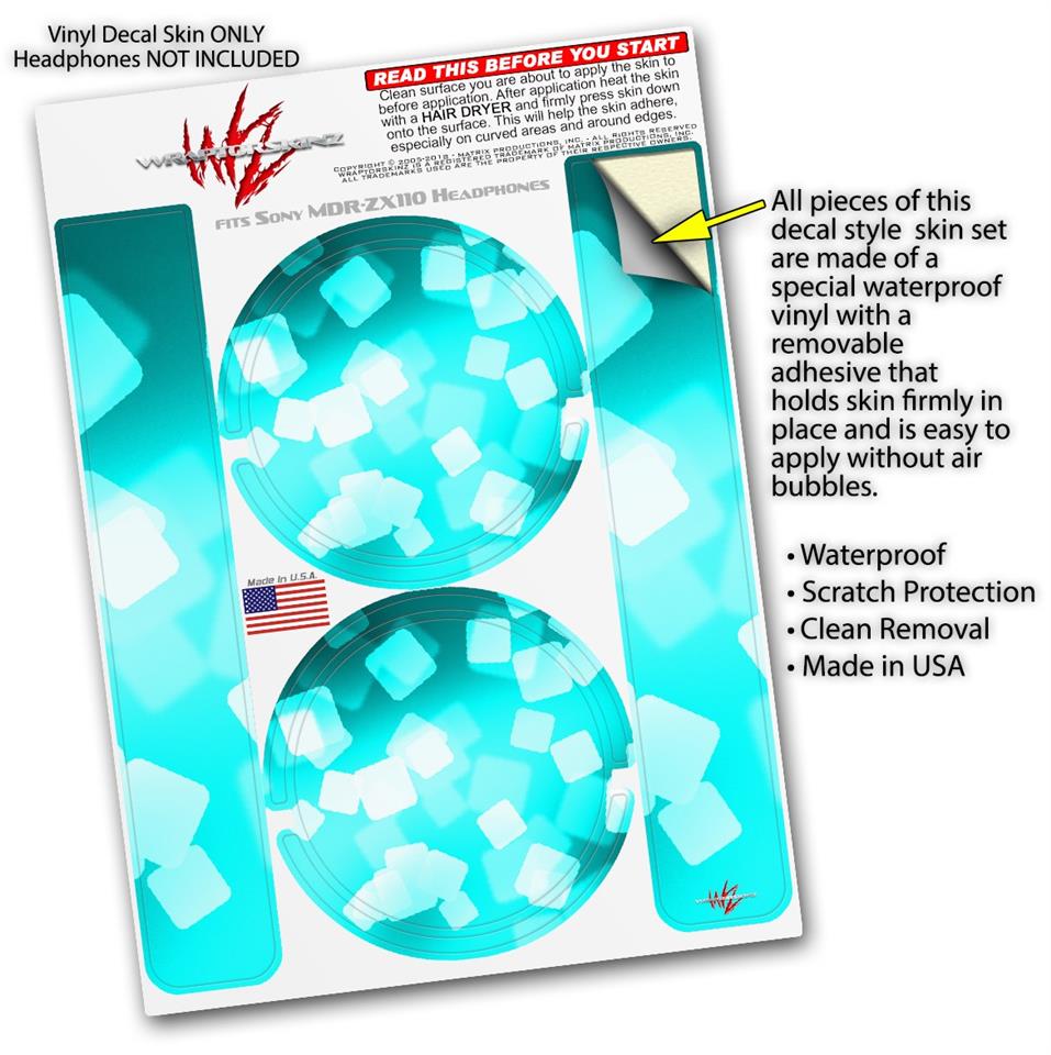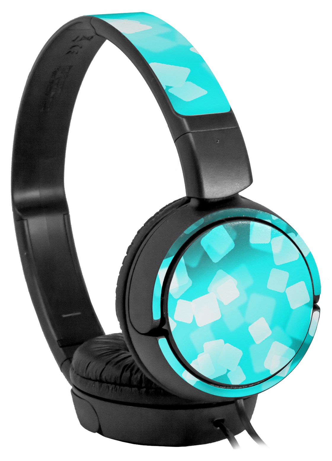 Decal style Skin Wrap for Sony MDR ZX110 Headphones Bokeh Squared Neon Teal (HEADPHONES NOT INCLUDED)