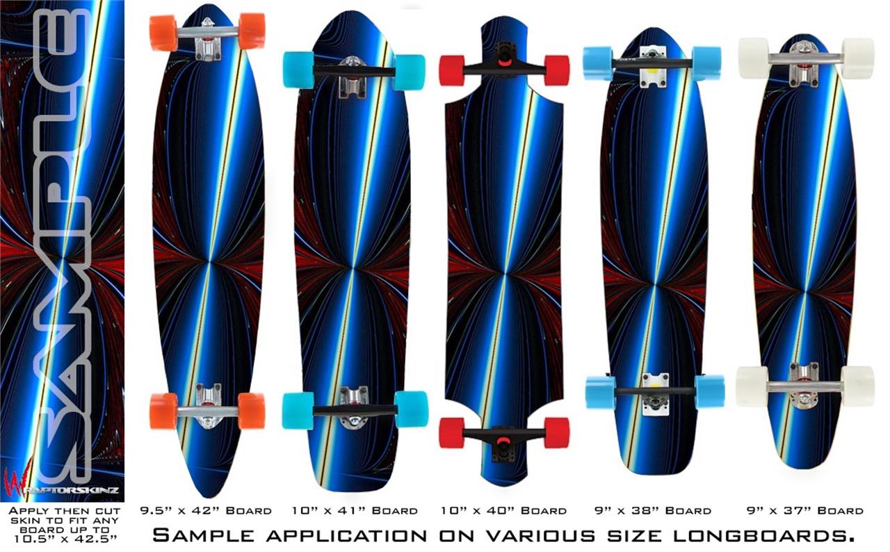 Our longboard skins are made so that one size fits boards up to 10” wide x 42” long. This means after applying the skin it you will trimming to fit you’re the shape of your board with a sharp utility knife.