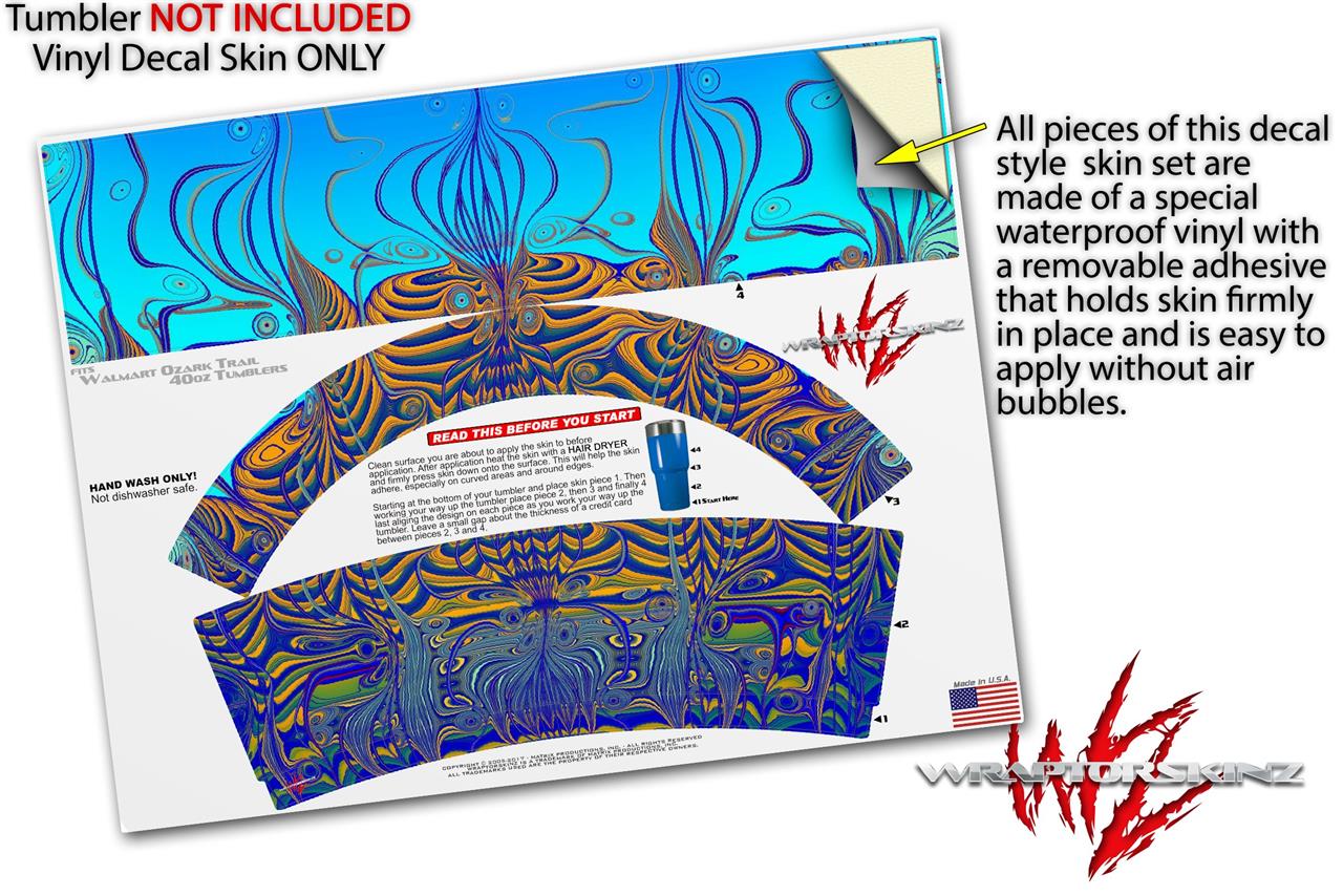 WraptorSkinz® skin wraps for Walmart Ozark Trail Tumblers are printed using superb photo quality designs and vibrant colors printed with special fade resistant inks that last even in direct sun for years. WraptorSkinz® are a composite of two layers of commercial grade materials. The bottom layer is a soft, flexible vinyl with a special removable adhesive that is easily positioned, applied without air bubbles. Next we print the bottom layer with UV protected, fade resistant inks that deliver superb photo quality designs in vibrant colors. Finally we bond a professional grade laminate over the entire skin adding a glossy protective finish.