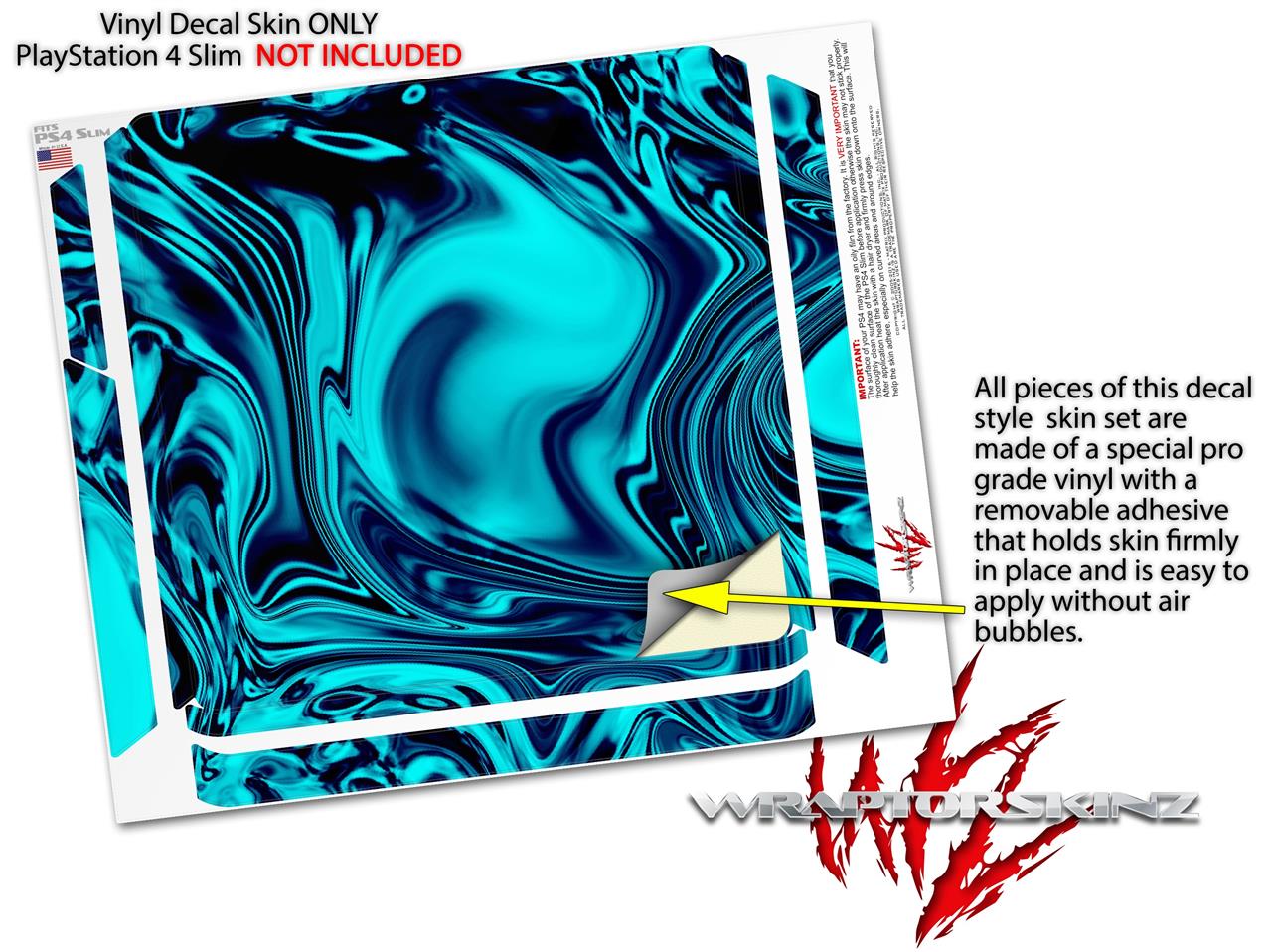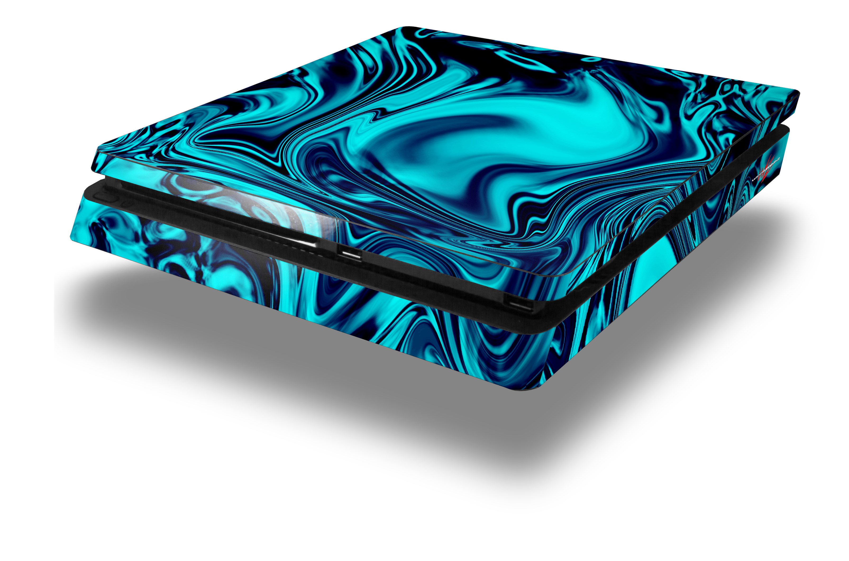 Vinyl Decal Skin Wrap compatible with Sony PlayStation 4 Slim Console Liquid Metal Chrome Neon Blue (PS4 NOT INCLUDED)