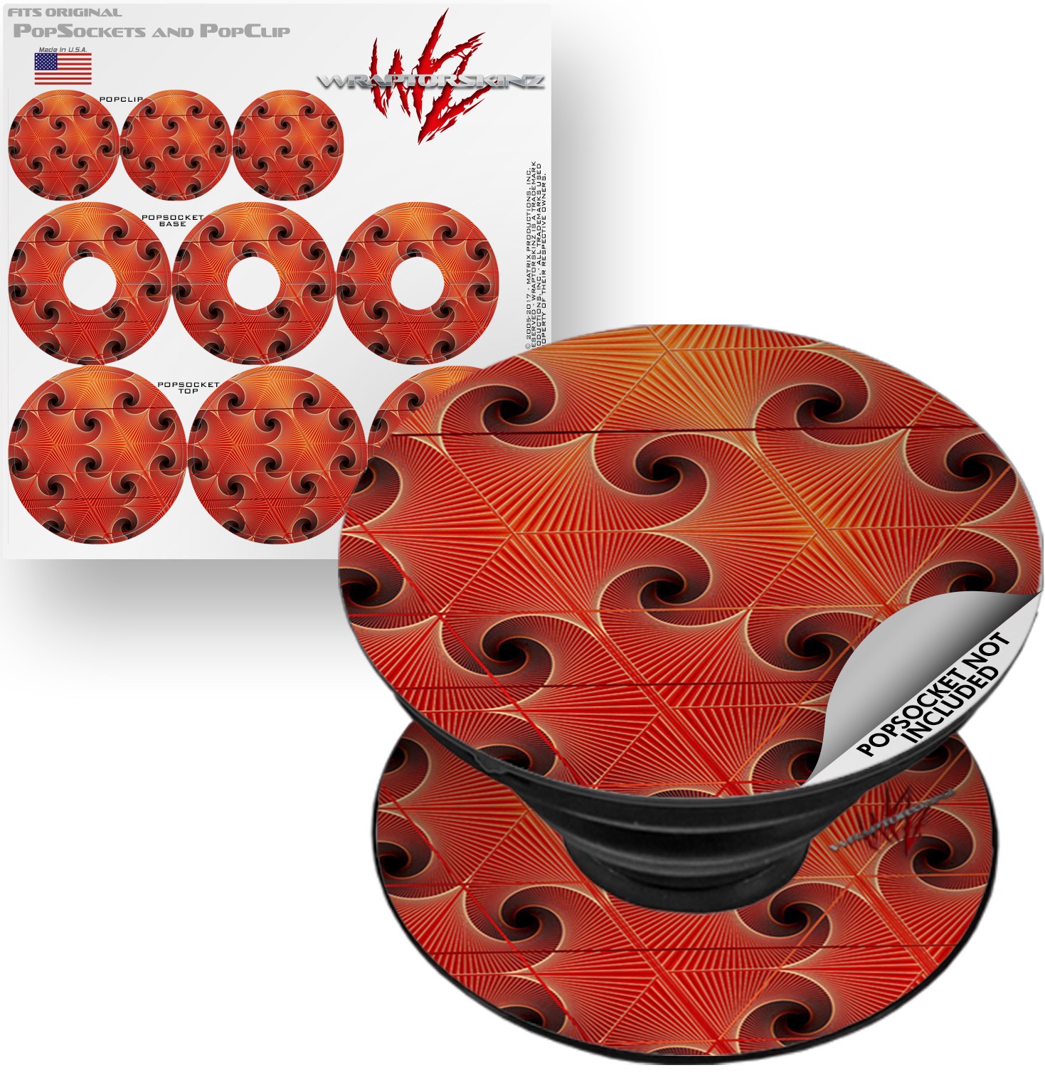 WraptorSkinz® skin decals are printed using superb photo quality designs and vibrant colors printed with special fade resistant inks that last even in direct sun for years. WraptorSkinz® are a composite of two layers of commercial grade materials. The bottom layer is a soft, flexible vinyl with a special removable adhesive that is easily positioned, applied without air bubbles. Next, we print the bottom layer with UV protected, fade resistant inks that deliver superb photo quality designs in vibrant colors. Finally, we bond a professional grade laminate over the entire skin adding a glossy protective finish. This WraptorSkinz skin accessory is not affiliated with, endorsed by and is in no way connected with the PopSocket products or brand.
