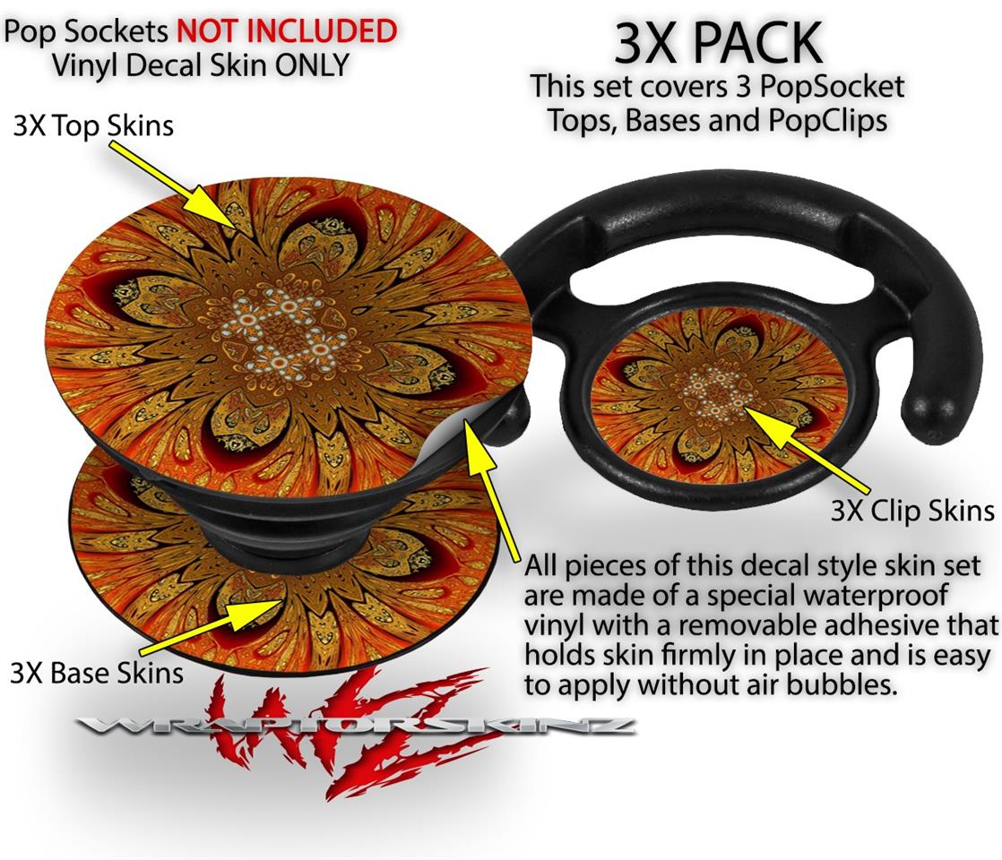 Decal Style Vinyl Skin Wrap 3 Pack compatible with PopSockets Flower Stone (POPSOCKET NOT INCLUDED)