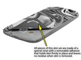 WraptorSkinz® are self adhering vinyl skins that help prevent scratches and look great doing it. Unlike bulky silicon, plastic or metal cases and faceplates, WraptorSkinz® are designed to be thin and very tough. WraptorSkinz® are a composite of two layers of commercial grade materials. The bottom layer is a soft, flexible vinyl with a special removable adhesive that is easily positioned, applied without air bubbles, and effortlessly removed without leaving a sticky residue. Next we print the bottom layer with UV protected, fade resistant inks that deliver superb photo quality designs in vibrant colors. Finally we bond a professional grade laminate over the entire skin adding a glossy protective finish.