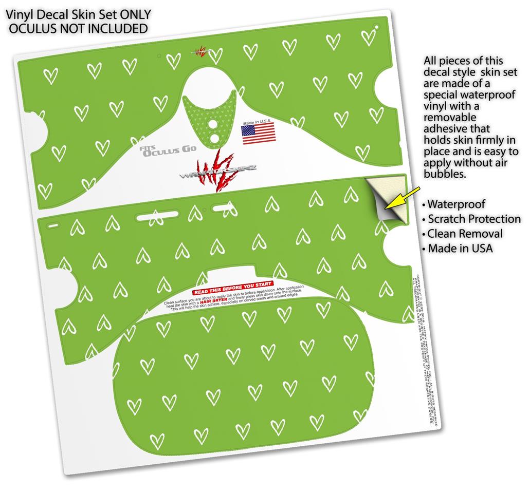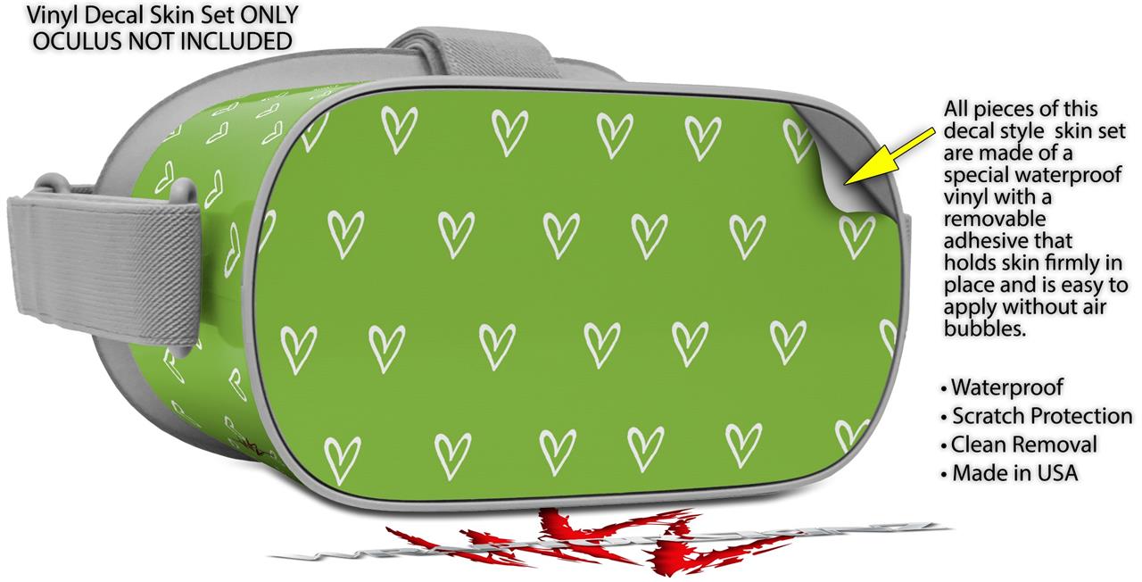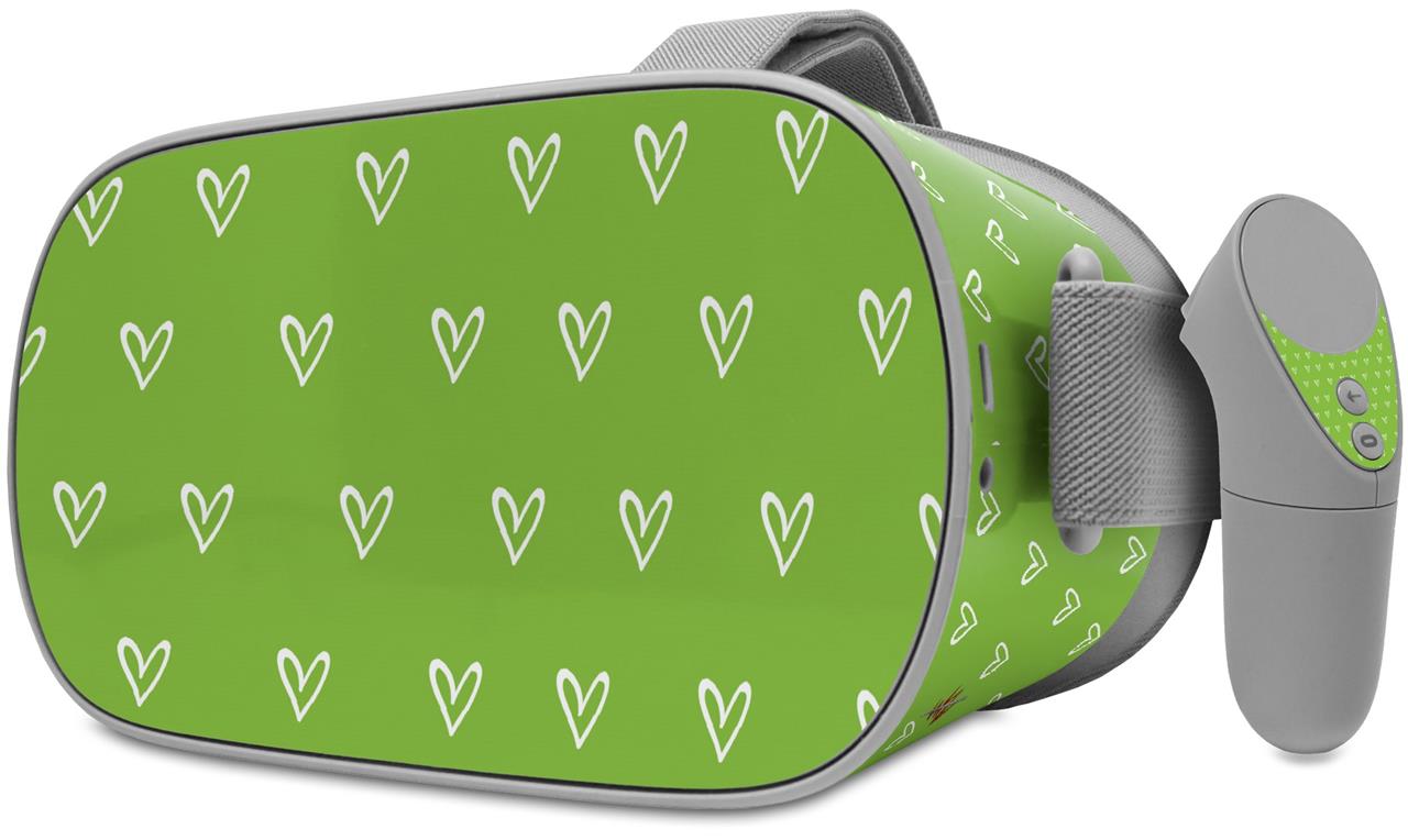 Decal style Skin Wrap compatible with Oculus Go Headset - Hearts Green On White (OCULUS NOT INCLUDED)