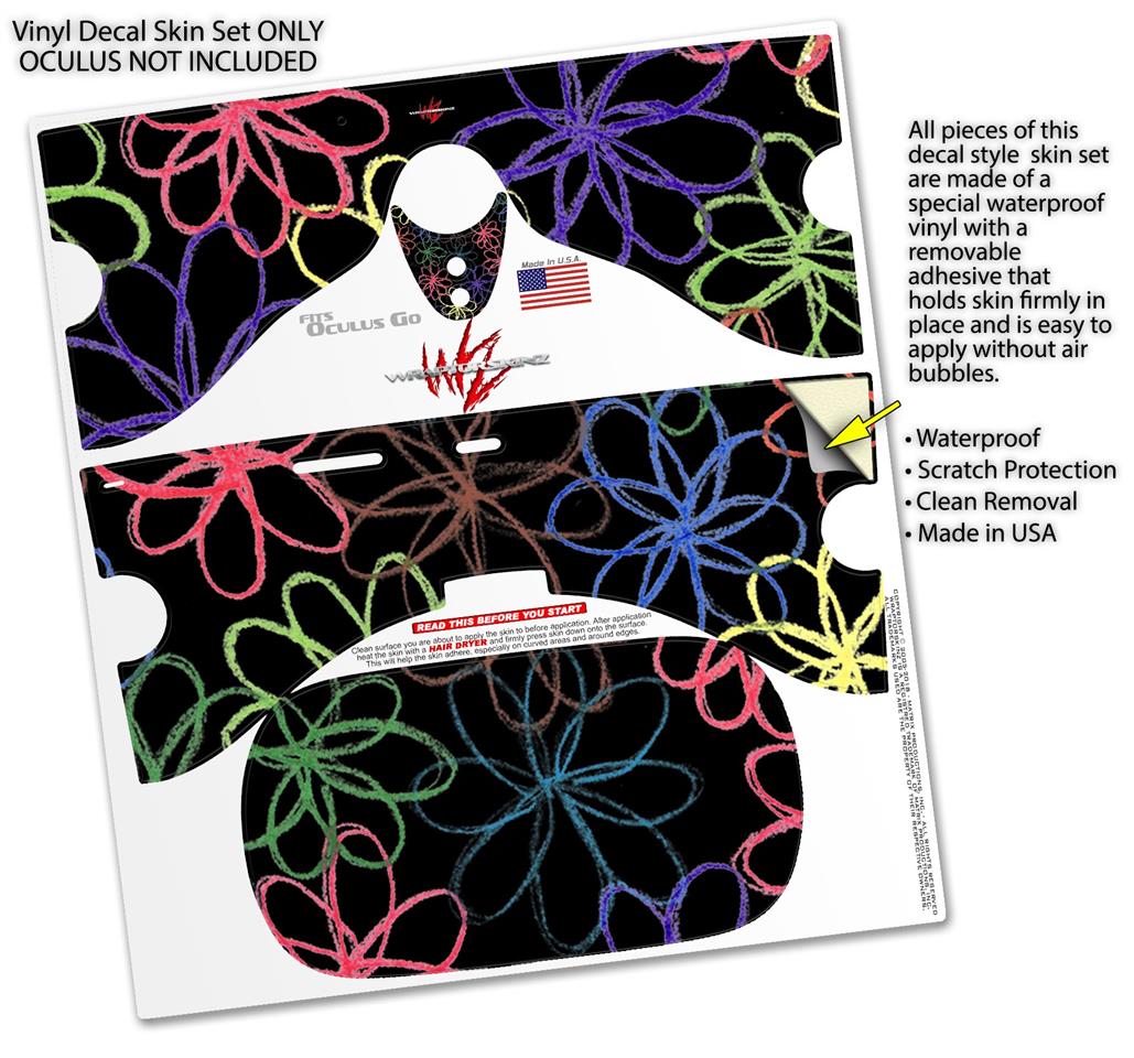 Decal style Skin Wrap compatible with Oculus Go Headset - Kearas Flowers on Black (OCULUS NOT INCLUDED)