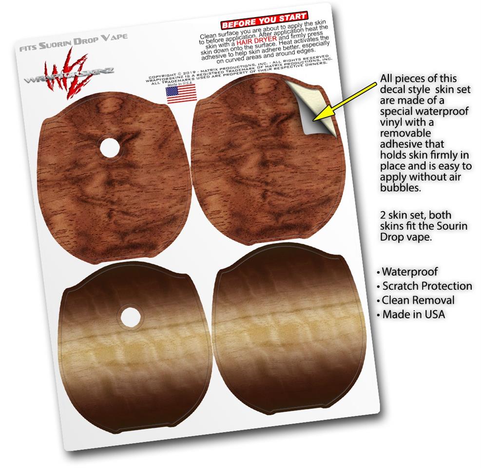 Skin Decal Wrap 2 Pack compatible with Suorin Drop Exotic Wood Waterfall Bubinga VAPE NOT INCLUDED
