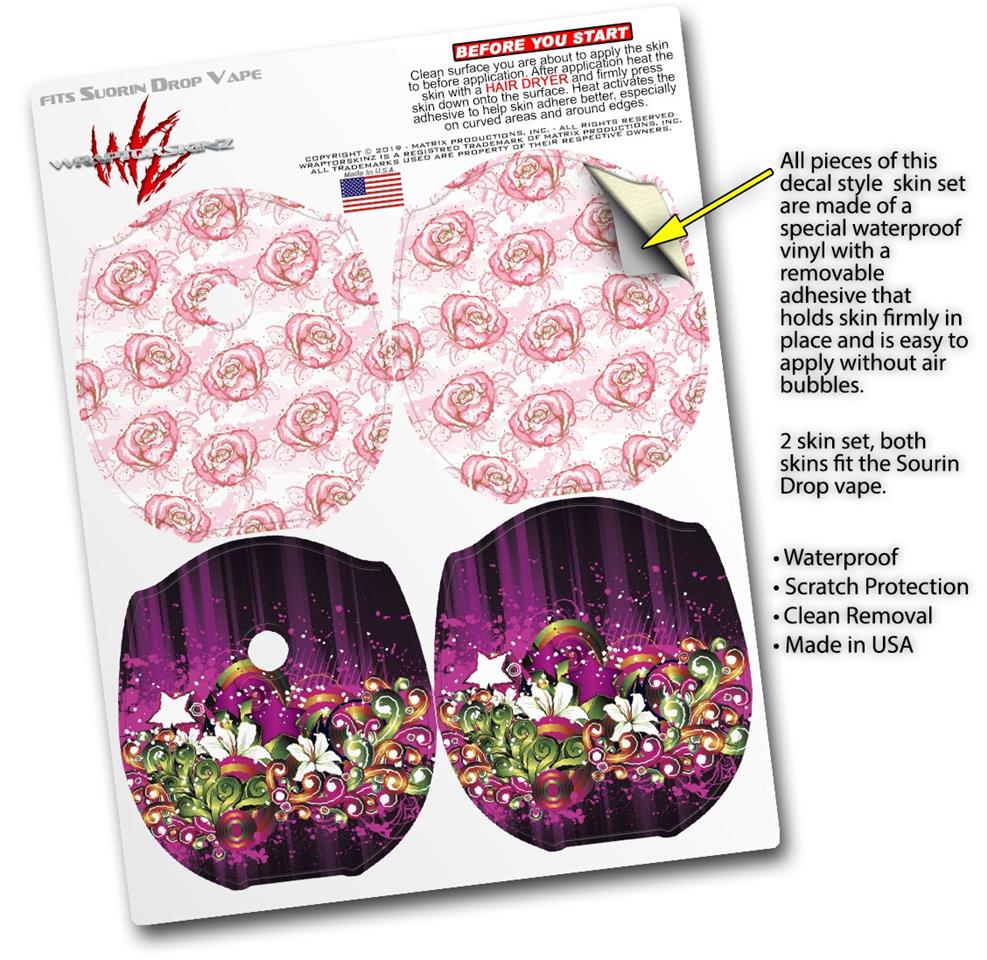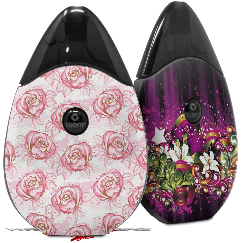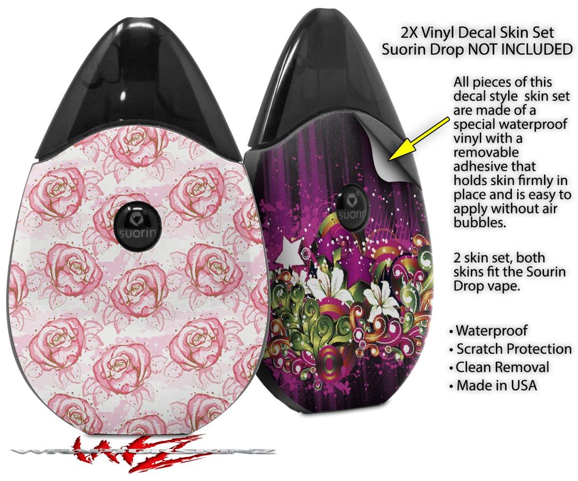Skin Decal Wrap 2 Pack compatible with Suorin Drop Flowers Pattern Roses 13 VAPE NOT INCLUDED