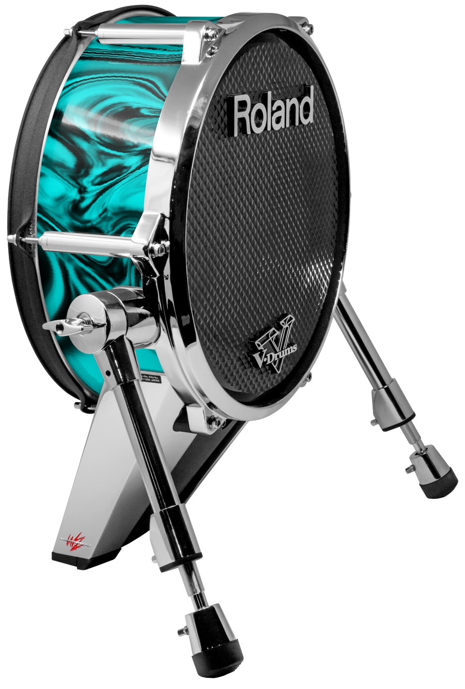 Skin Wrap works with Roland vDrum Shell KD-140 Kick Bass Drum Liquid Metal Chrome Neon Teal (DRUM NOT INCLUDED)