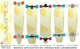 Our longboard skins are made so that one size fits boards up to 10” wide x 42” long. This means after applying the skin it you will trimming to fit you’re the shape of your board with a sharp utility knife.