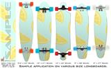 Our longboard skins are made so that one size fits boards up to 10” wide x 42” long. This means after applying the skin it you will trimming to fit you’re the shape of your board with a sharp utility knife.
