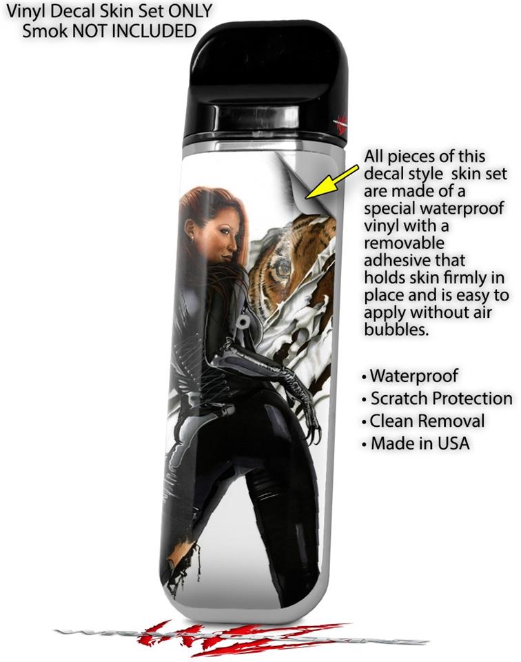 WraptorSkinz® skin wraps are printed using superb photo quality designs and vibrant colors printed with special fade resistant inks that last even in direct sun for years. WraptorSkinz are a composite of two layers of commercial grade materials. The bottom layer is a soft, flexible vinyl with a special removable adhesive that is easily positioned, applied without air bubbles. Next we print the bottom layer with UV protected, fade resistant inks that deliver superb photo quality designs in vibrant colors. Last, we bond a professional grade laminate over the entire skin adding a glossy protective finish. This product is not affiliated with or endorsed by the Smok brand.