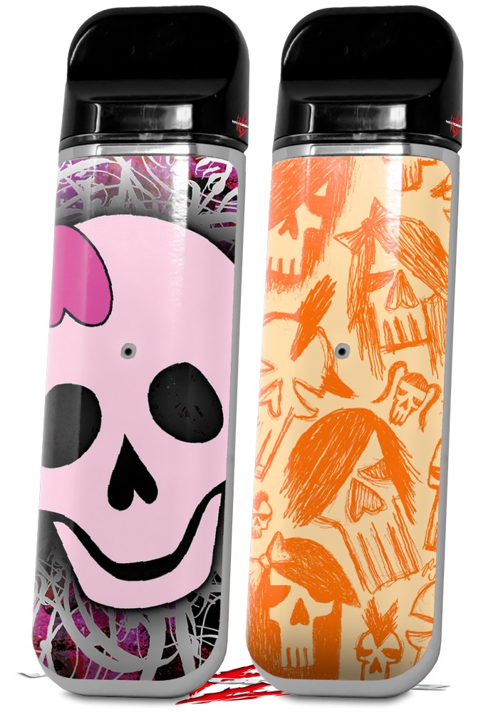 Skin Decal Wrap 2 Pack for Smok Novo v1 Pink Skull VAPE NOT INCLUDED