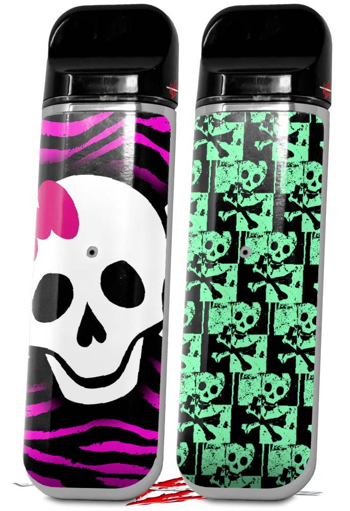Skin Decal Wrap 2 Pack for Smok Novo v1 Pink Zebra Skull VAPE NOT INCLUDED