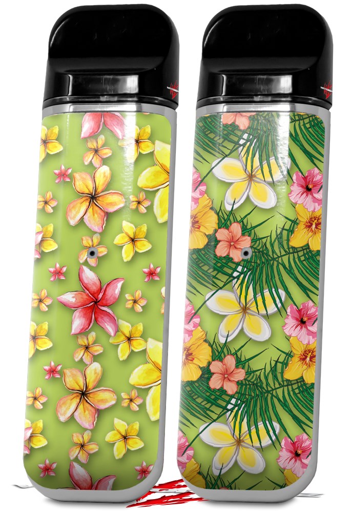 Skin Decal Wrap 2 Pack for Smok Novo v1 Beach Flowers Sage Green VAPE NOT INCLUDED