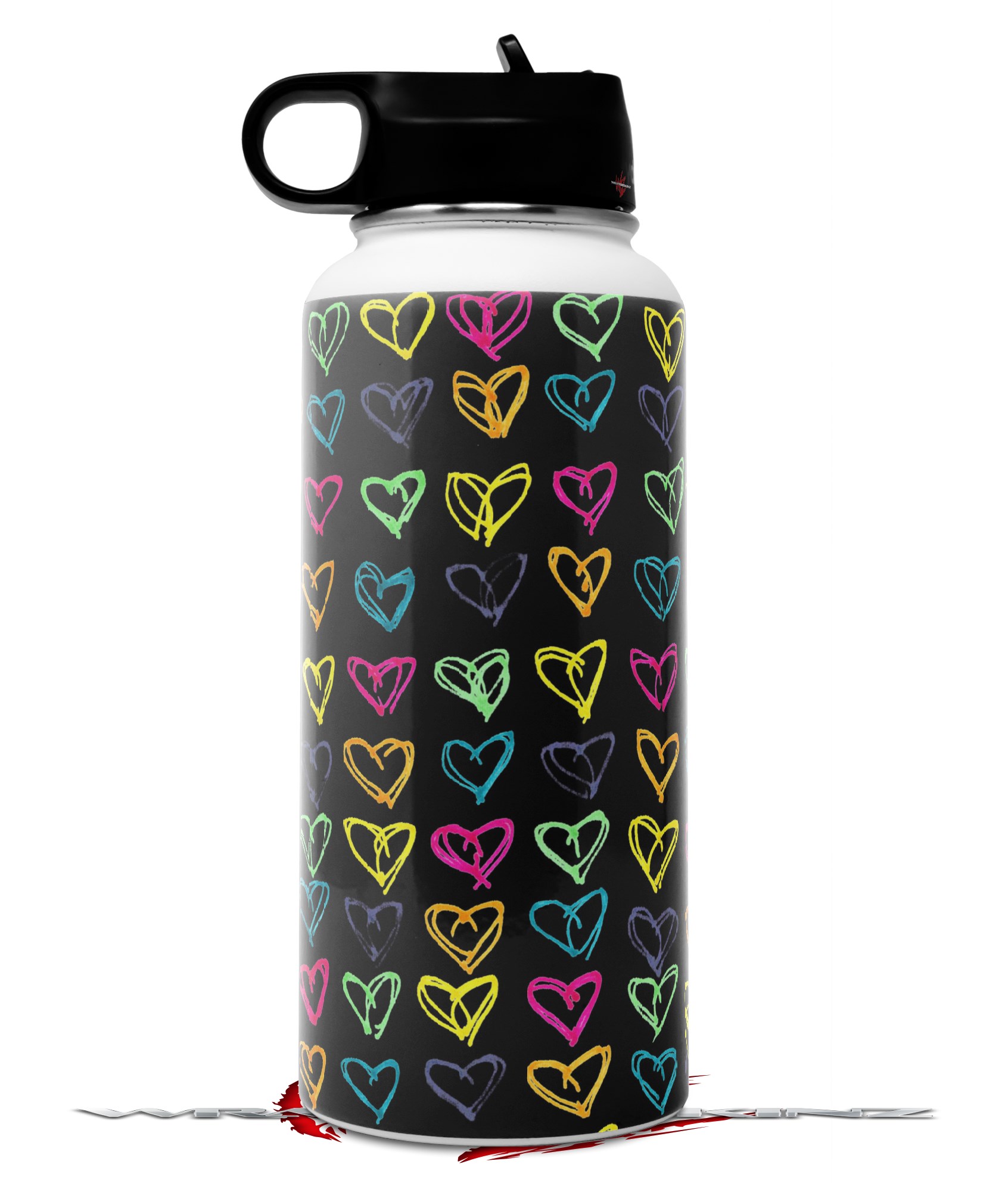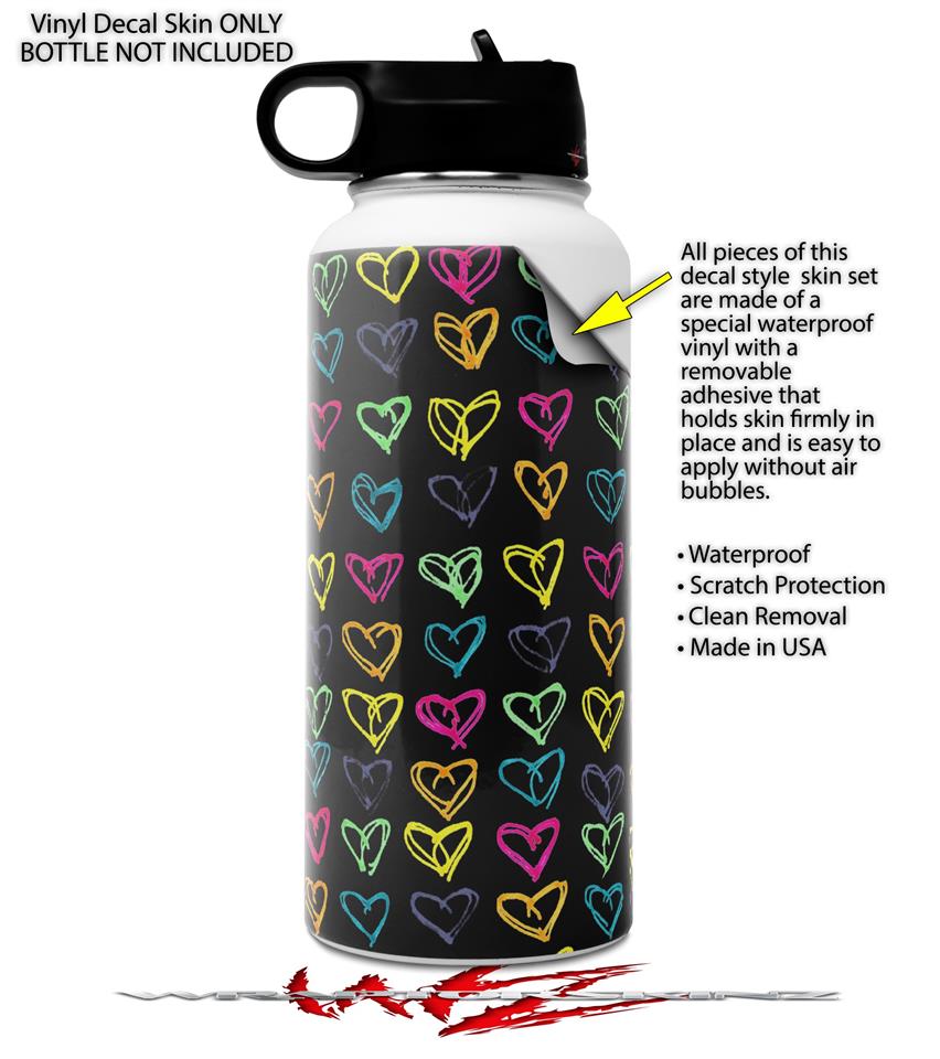 Skin Wrap Decal compatible with Hydro Flask Wide Mouth Bottle 32oz Kearas Hearts Black (BOTTLE NOT INCLUDED)