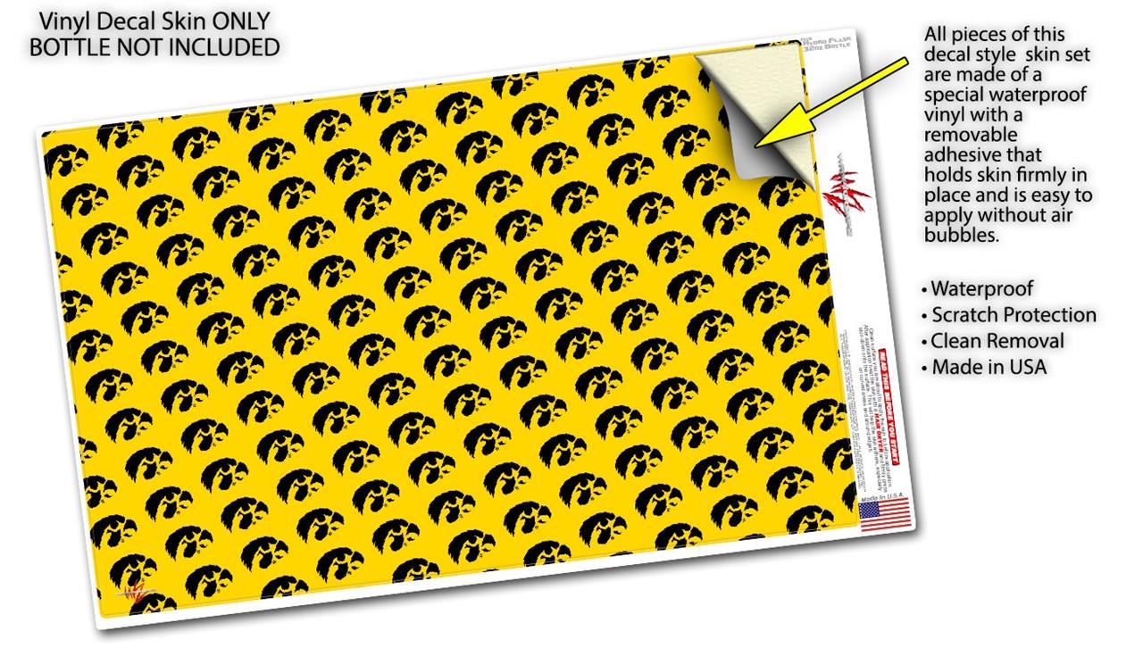 Skin Wrap Decal compatible with Hydro Flask Wide Mouth Bottle 32oz Iowa Hawkeyes Tigerhawk Tiled 06 Black on Gold (BOTTLE NOT INCLUDED)