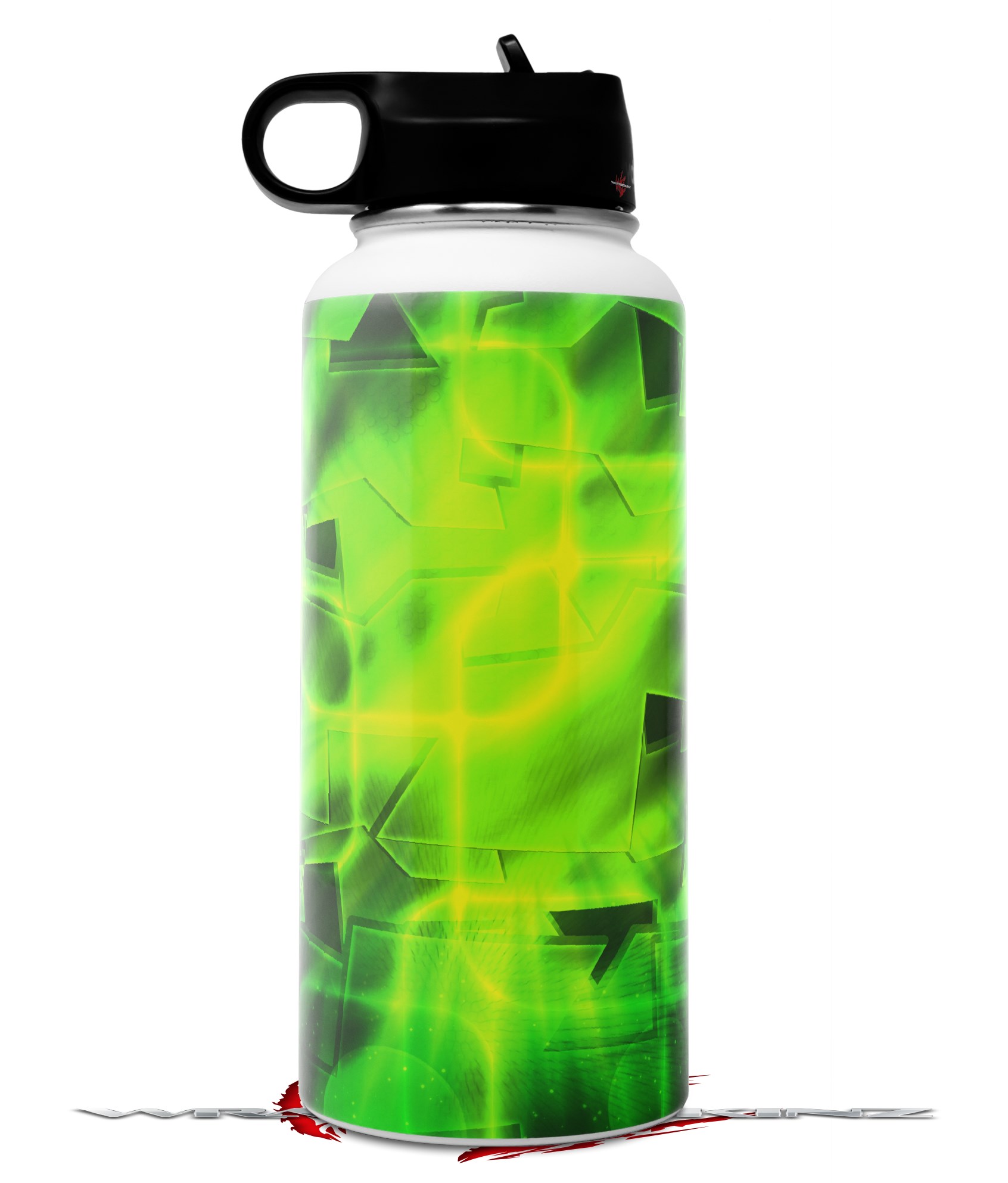 Skin Wrap Decal compatible with Hydro Flask Wide Mouth Bottle 32oz Cubic Shards Green (BOTTLE NOT INCLUDED)