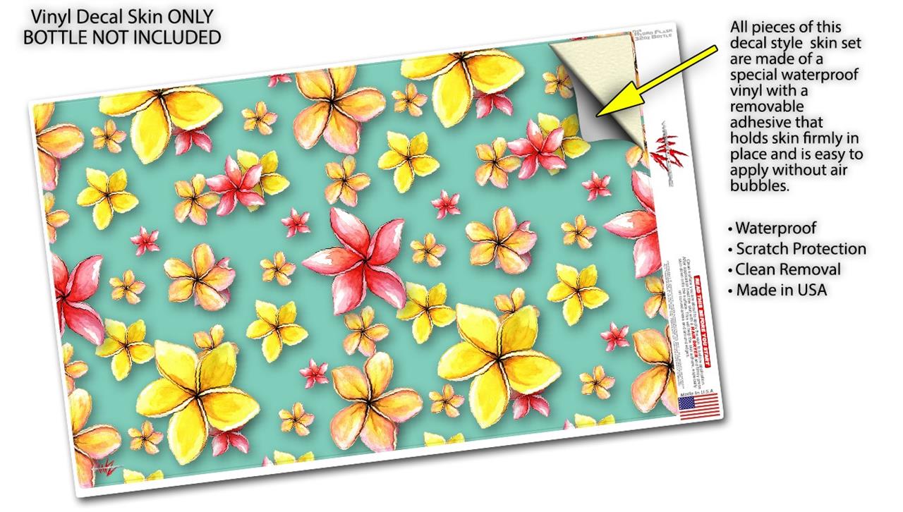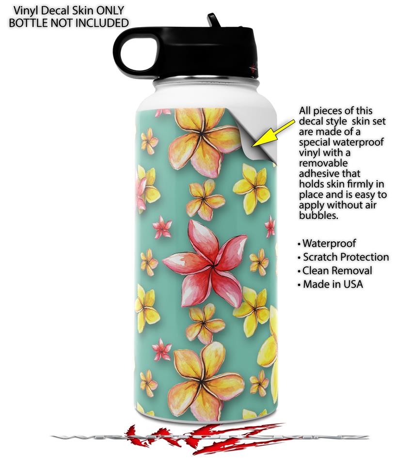 Skin Wrap Decal compatible with Hydro Flask Wide Mouth Bottle 32oz Beach Flowers Seafoam Green (BOTTLE NOT INCLUDED)