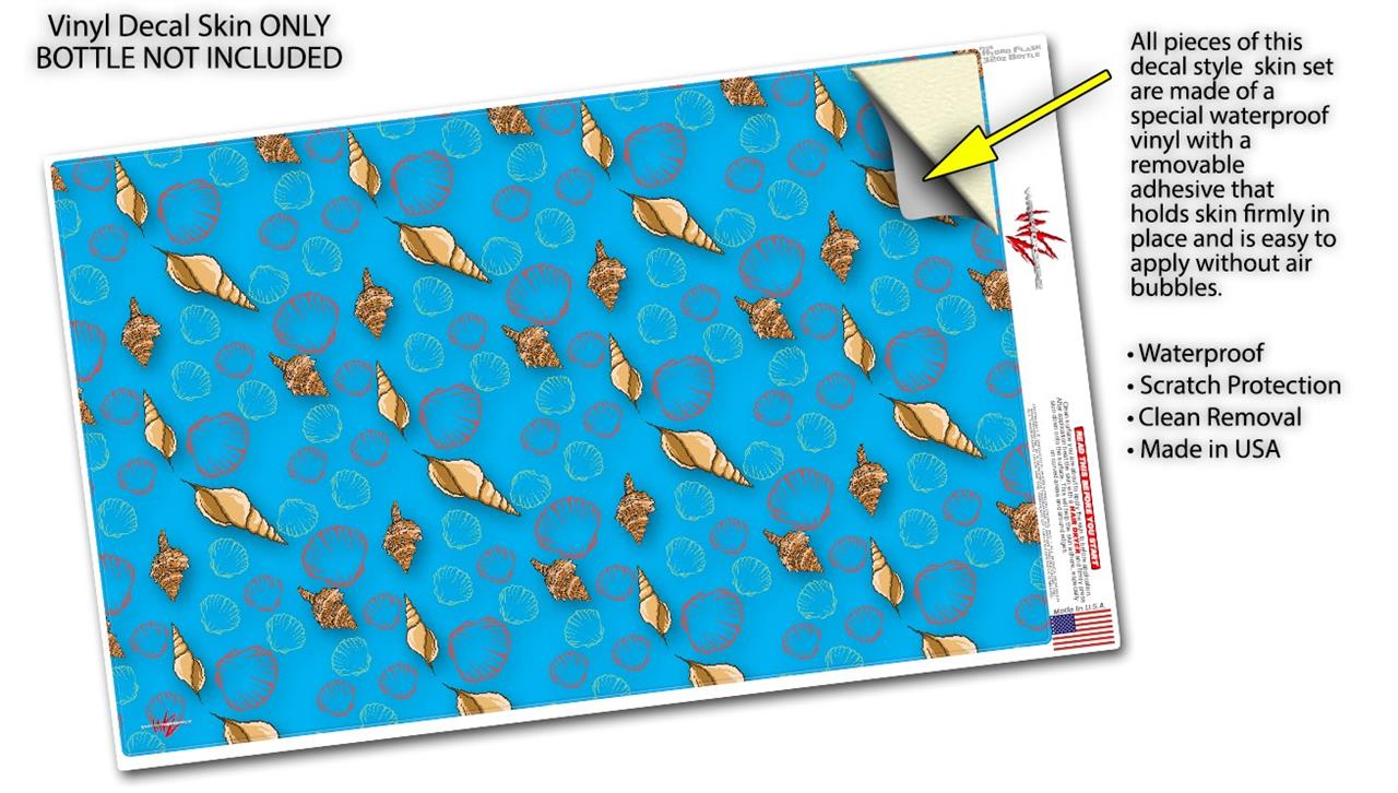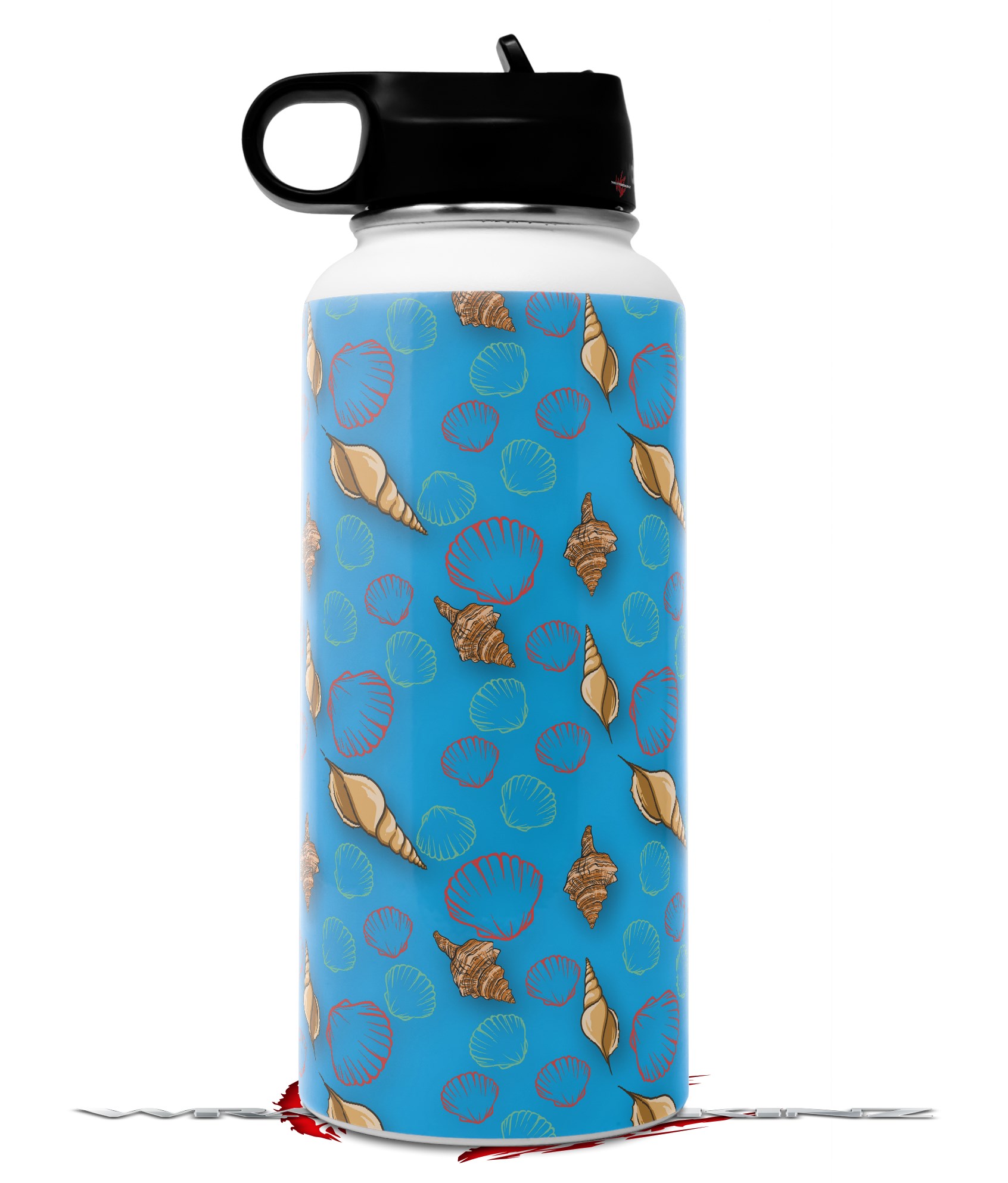 Skin Wrap Decal compatible with Hydro Flask Wide Mouth Bottle 32oz Sea Shells 02 Blue Medium (BOTTLE NOT INCLUDED)