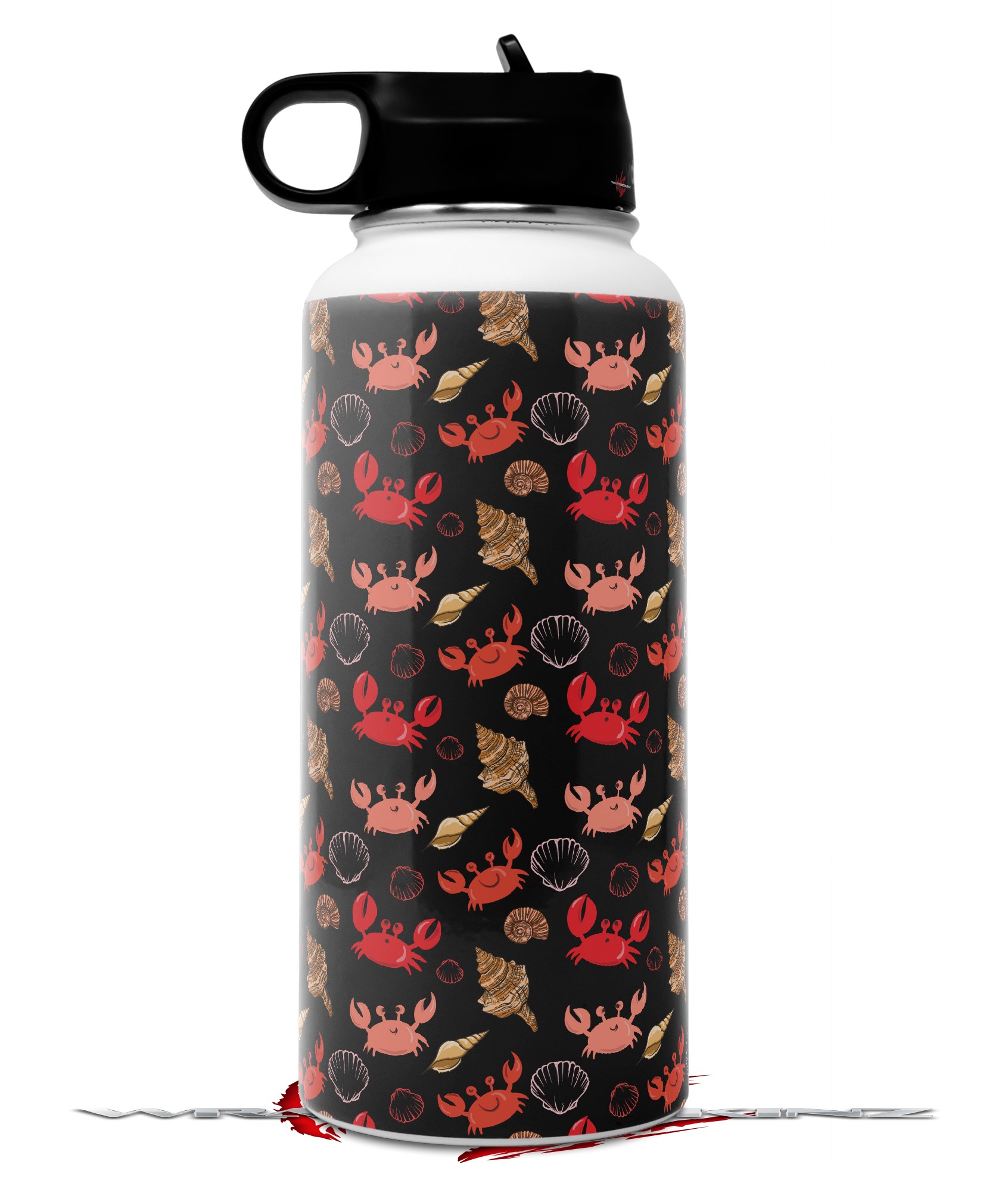Skin Wrap Decal compatible with Hydro Flask Wide Mouth Bottle 32oz Crabs and Shells Black (BOTTLE NOT INCLUDED)