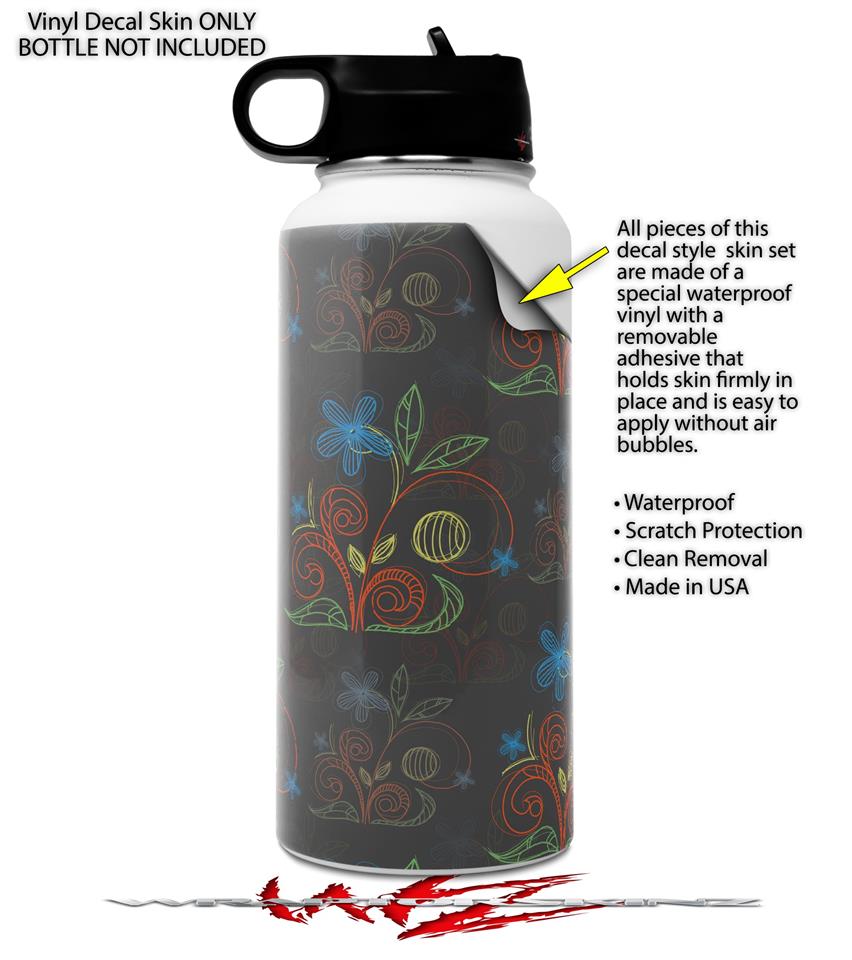 Skin Wrap Decal compatible with Hydro Flask Wide Mouth Bottle 32oz Flowers Pattern 07 (BOTTLE NOT INCLUDED)